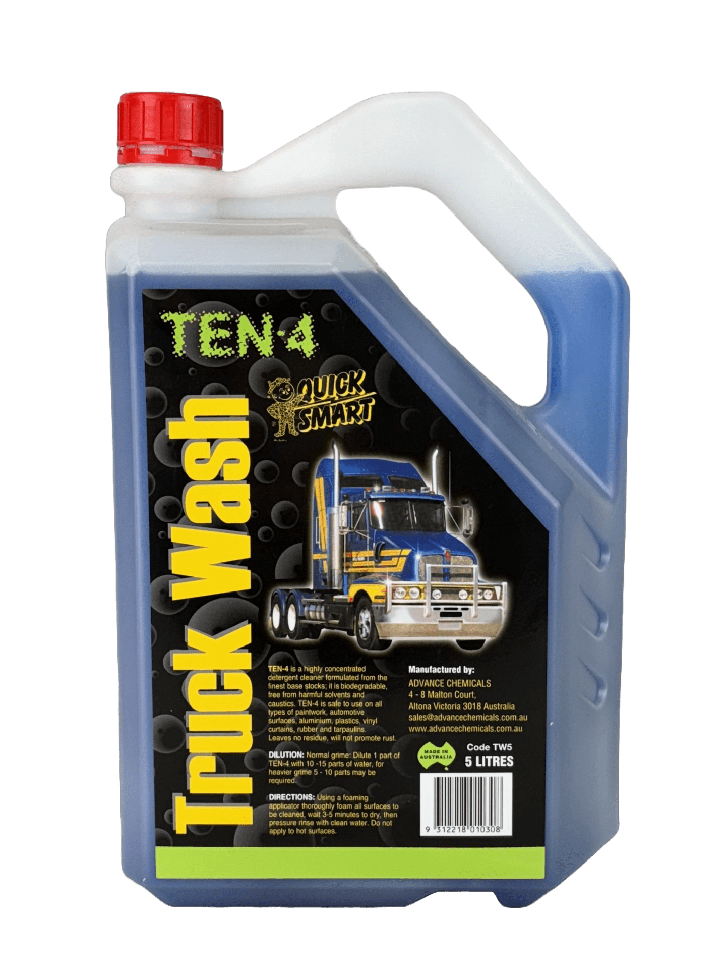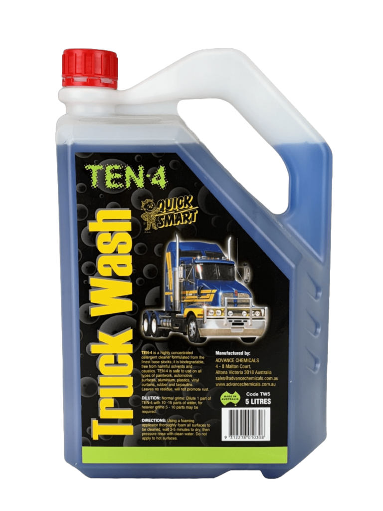 Our Ten-4 Truck Wash is an ideal pressure washer formulation. Highly concentrated detergent cleaner; 34% active. Safe for use on paintwork, automotive surfaces, vinyl curtains and tarpaulins. Free from harmful solvents. Leaves no residue and will not promote rust.